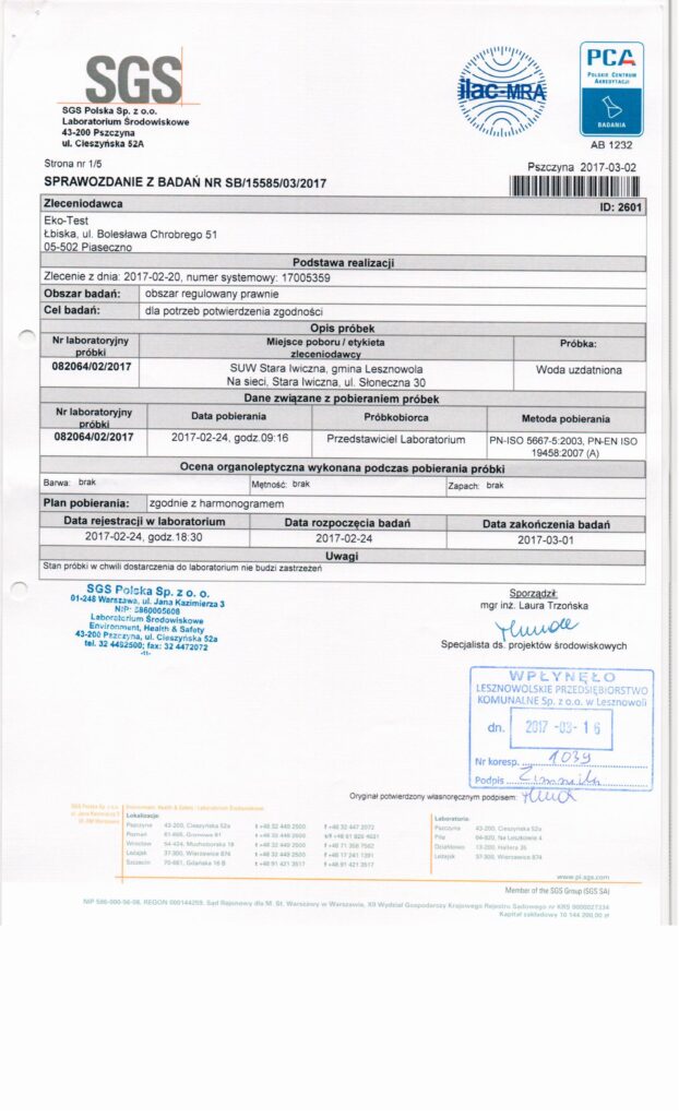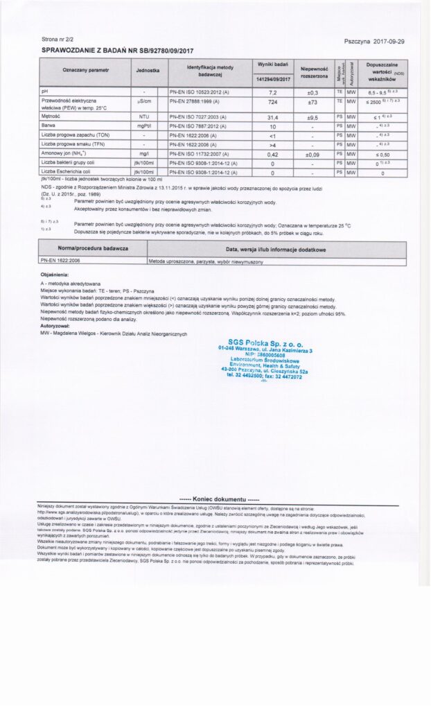 • Archiwalne wyniki badań wody Stara Iwiczna